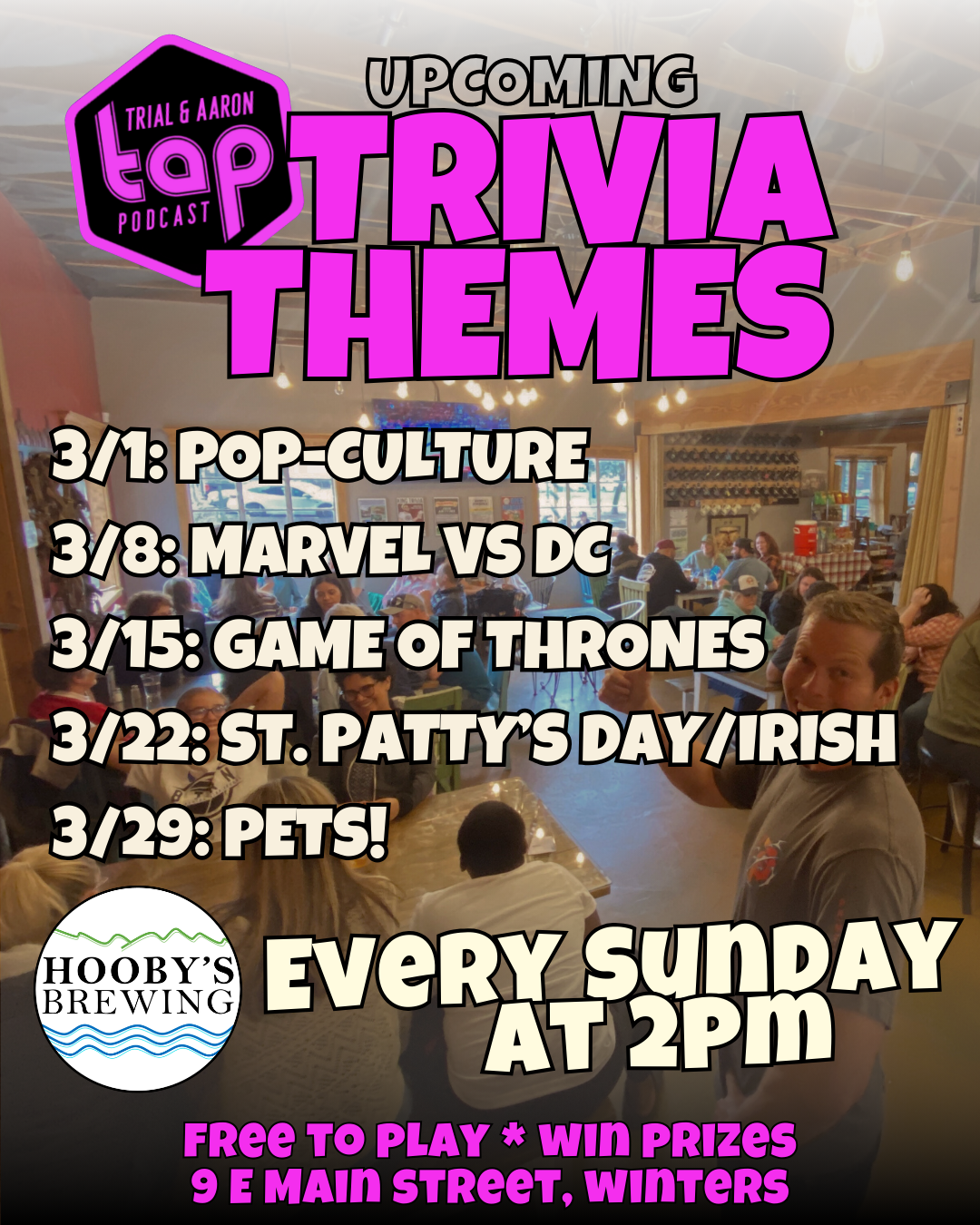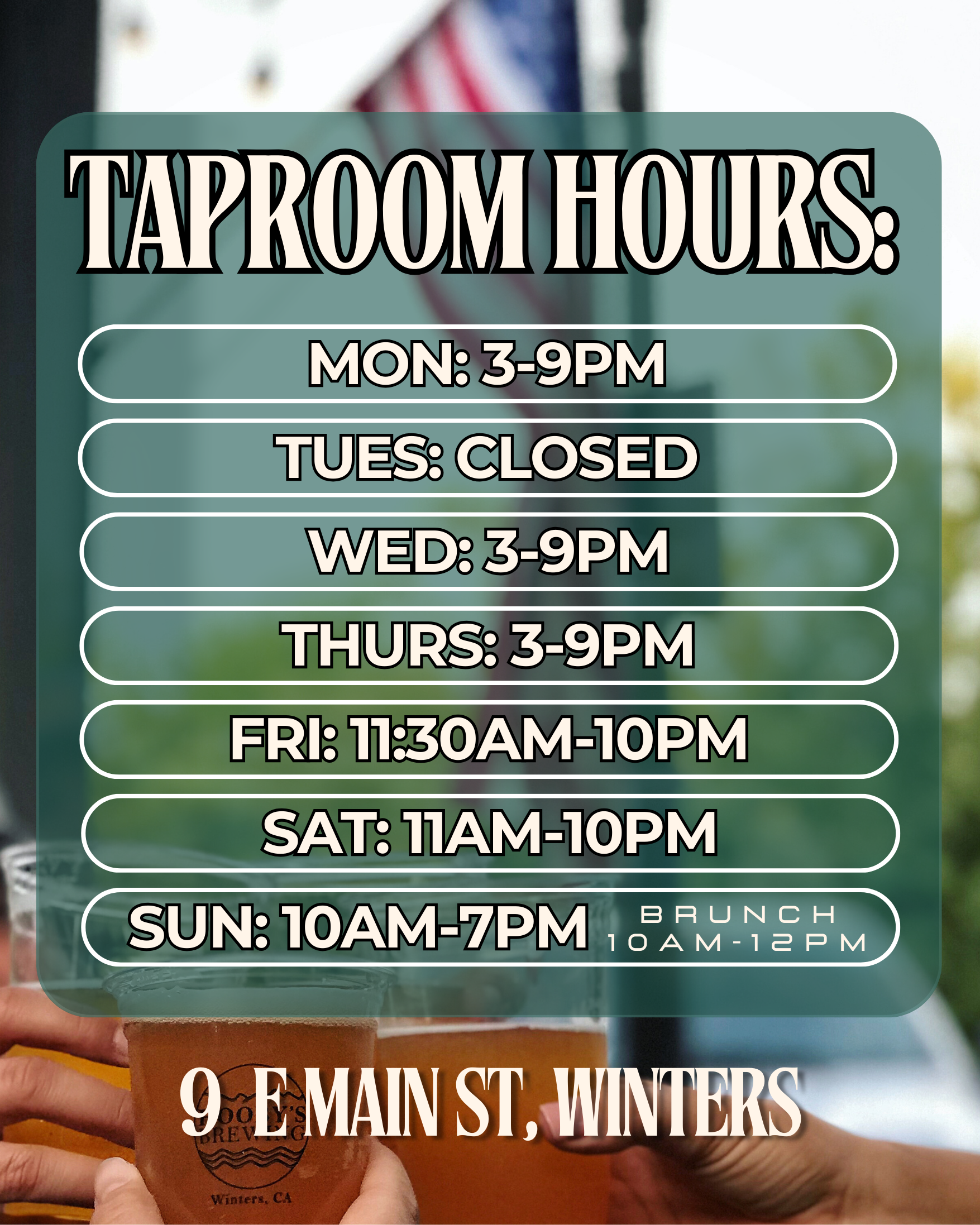 Welcome to Hooby’s Brewing!We are a family owned and operated brewery with a taproom and restaurant in downtown Winters, California. We also have a second seasonal location just outside of Davis -- Hooby's Farm. Both locations are family and pet friendly, and ready for your family to visit!