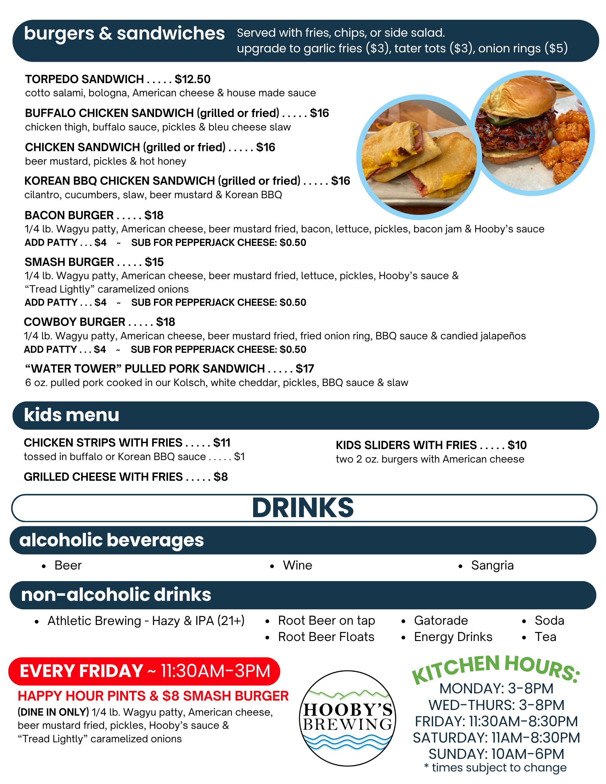 ** The full kitchen menu posted here will not be available during brunch hours: Sundays, 10am-12pm